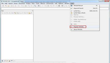 1、双击运行桌面快捷方式打开软件,点击help—register winedt进入注册界面。