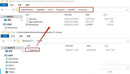 3、将Crack文件内子文件复制到软件文件下的resources文件内默认位置:C:\Users\Administrator\AppData\Local\Programs\bstudio\resources