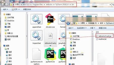 2、将破解补丁“JetbrainsCrack.jar”复制到上一步打开的文件目录下,一般默认为:C:\Program Files\JetBrains\PyCharm 2018.2.4\bin