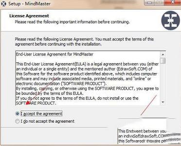 1、下载数据包软后解压,双击mindmaster.exe,然后勾选同意协议并点击next