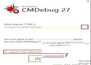 2、阅读软件的许可协议,阅读完成后点击我接受许可协议,必须接受协议才能继续安装软件;点击“...”可更改安装软件位置,安装向导默认设置的软件默认安装路径为C:\Program Files\JPSoft\CMDebug27