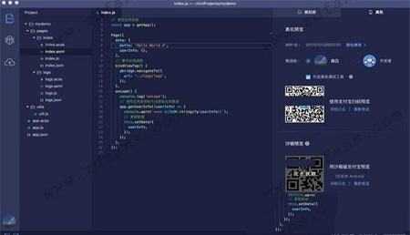集成开发调试、代码编辑、小程序预览及发布等功能