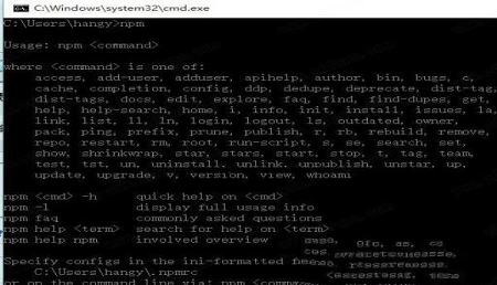 2、安装完成后,运行cmd,输入npm,如果安装成功,会输出如下版本信息: