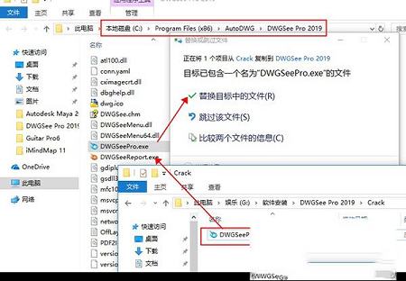 7、安装完成后将数据包中的破解补丁复制到安装目录下替换原文件即可,一般默认安装目录为C:\Program Files (x86)\AutoDWG\DWGSee Pro 2019