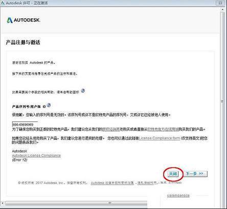 5、点击“关闭”出现提示时点击“确定”然后再次输入序列号和密钥