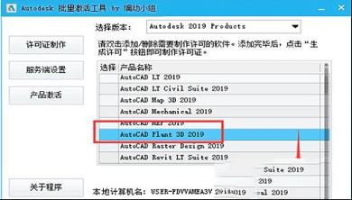 4、运行plant 3d 2019注册机,即批量激活工具,勾选需要激活的软件包,点“生成许可”。