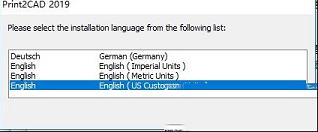 1、下载数据包然后解压,双击“install-Print2CAD-2019-x64.msi”选择语言然后点击“OK”