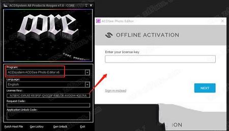 9、再运行注册机,选择ACDSee Photo Studio Editor v6,然后再依次点击Patch Host File、Gen LicKey生成许可证密钥,将License Key复制到软件中