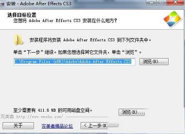 3、选择After Effects CS3的安装路径,默认路径为C:\Program Files (x86)\Adobe\Adobe After Effects CS3,可点击浏览更换路径,或直接默认点击下一步