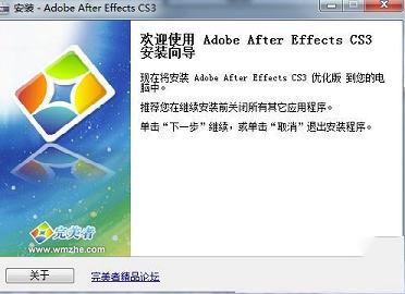 1、解压安装包,双击“AE_CS3_chs.exe”即可开始程序的安装2、弹出安装界面,直接点击下一步