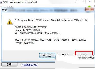 7、安装的过程中,可能会因为某些原因导致安装的过程会弹出提示框,直接点击“忽略”即可