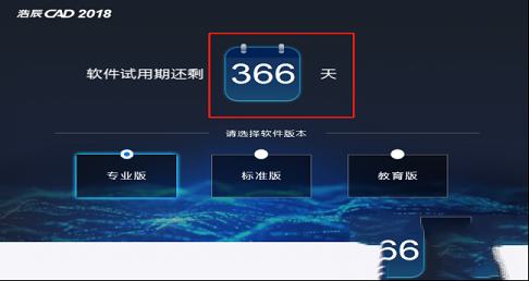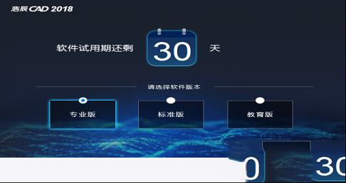 第一步:先运行浩辰CAD 2018安装包(GstarCAD2018_SP2_x64_zh_cn_180626.exe)第二步:安装完成后先运行软件,发现只有30天的试用期。别担心,先选择你想试用的版本,选择试用。有专业版,标准版,教育版。