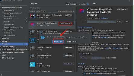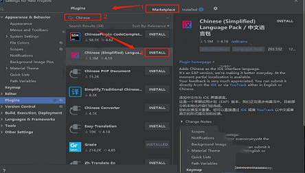 2、点击下“marketplace”接着在输入框中输入“Chinese”后即可找到汉化插件,点击“install”进行下载