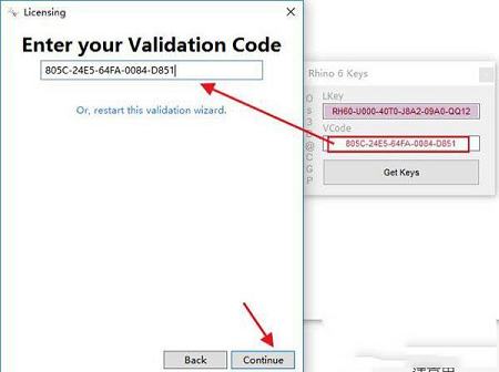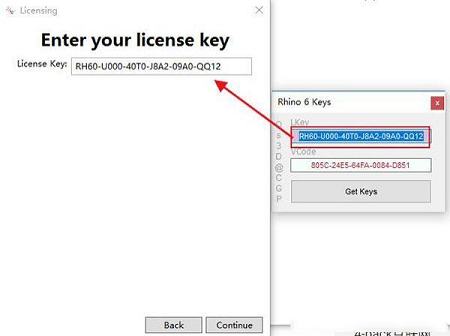 4、运行注册机,点击get key然后将注册码复制到软件上并点击continue