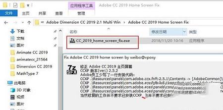 4、安装完成后回到数据包中双击“CC_2019_home_screen_fix.exe”点击“确定即可”