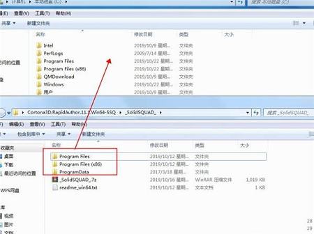 4、将_SolidSQUAD_破解文件解压,得到Program Files、Program Files (x86)、ProgramData三个文件夹;将三个文件夹复制到软件安装目录下替换即可破解