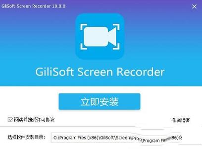 1、下载软件包解压,运行“screen-recorder-10.exe”,选择安装目录,点击立即安装。