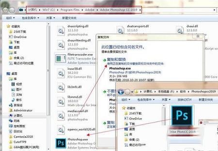 2、将数据包中提供的破解补丁复制到上一步打开的文件目录下替换原文件即可。