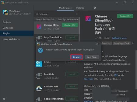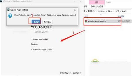 8、接着再将本站提供的“jetbrains-agent-latest.zip”文件拖放到 IDE 窗口,并点击restart;