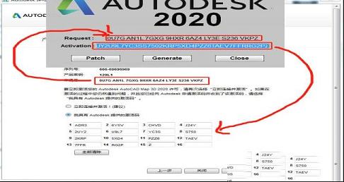 13:到了这一步,请断开网络连接,使用管理员身份运行注册机,将“申请号”复制到“request”里面,点击“patch”,点击“generate”,计算出激活码,将激活码复制到下列方框中即可。点击“下一步”。切记,此步骤一定要在断网模式下运行。