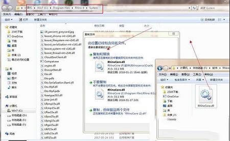 6、将数据包中提供的破解补丁“RhinoCore.dll”复制到上一步打开的文件目录下替换掉原文件即可