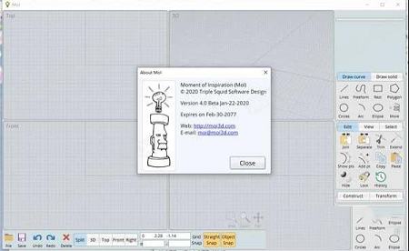 8、打开软件我们能够看到授权到2077年,软件已是Moi3D破解版。