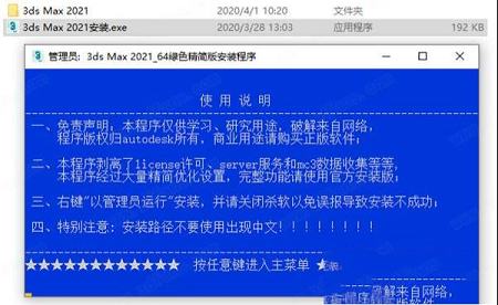 1、下载安装包并解压缩,运行3ds Max 2021安装.exe,按任意键进入菜单