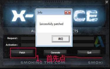 6、运行注册机xf-adesk19_x64.exe打开,首先点击patch按纽,会出现“successfully patched”提示即可进行下一步;