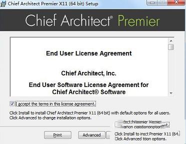 1、下载软件包介意,双击运行“Chief_Architect_Premier-21.1.0.40-Win64.msi”程序安装软件,勾选I accept接受协议。