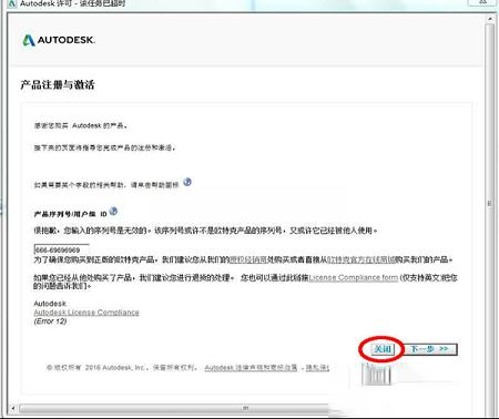 5、点击关闭,如出现提示框点击“确定”返回激活界面再次点击激活并重新输入序列号和密钥