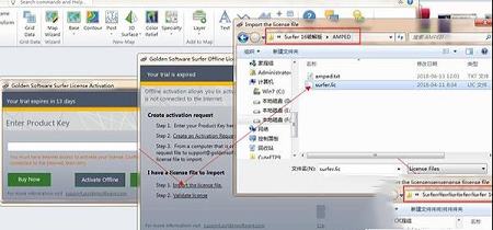 2、点击“activate offine”然后点击提示框的atep 1:import the license file然后找到数据包中的破解文件“Surfer.lic ”并打开,再点击step 2:validate license
