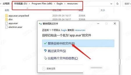 4、将app.asar复制到软件安装目录下的resources文件夹内进行替换
