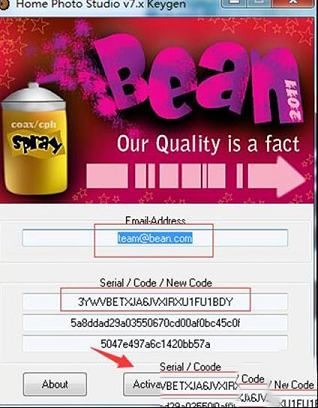 5、运行keygen,输入任意电子邮件,删除第一行的序列号输入框中的内容,并使用Read me.txt中提供的任意一个序列号,点击激活按钮,