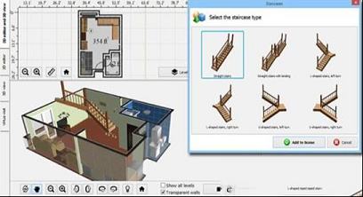 程序的突出特点之一是楼梯构造器。一旦决定放置楼梯,此工具会自动在天花板上开口,并允许您自定义台阶,扶手和平台。