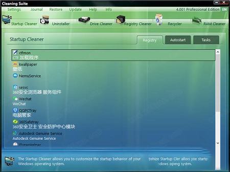 1、清洁套件:Windows的系统清洁和调整总共有六个助手分析您的系统并启用深度清洁操作。例如,您可以从所有流行的Internet浏览器中删除临时文件,清除浏览器历史记录,缓存和cookie,并防止已安装的应用程序和工具在系统启动时自动启动。