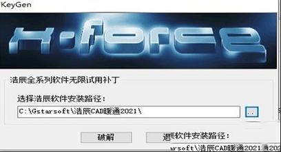 6、将软件包中的KeyGen.exe注册机复制到默认目录下,再将其运行,选择软件安装路径点击“破解”;