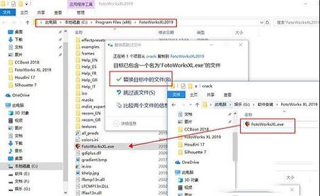 6、安装完成后将破解补丁复制到安装目录下替换原文件即可,一般默认安装目录为“C:\Program Files (x86)\FotoWorksXL2019”