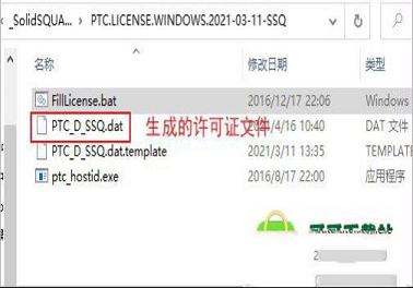 2、打开原程序文件夹,右键管理员身份运行FillLicense.bat,会自动生成许可证文件PTC_D_SSQ.dat;
