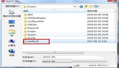 2、弹出文件夹界面,进入C:\Program Files\Adobe 软件\Support Files\Contents\Windows,并选中“amtlib.dll”文件,点击“打开”
