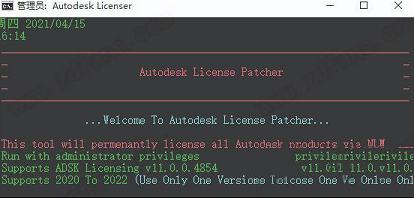 3、如果你的软件已经运行请关闭它,我们回到刚才下载的数据包中运行破解补丁“Autodesk License Patcher.exe”,等待它运行完成即可