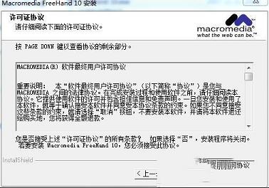 1、下载软件包解压,运行MacroMedia FreeHandexe程序安装软件,点击下一步。