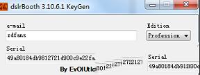 6、断开网络,运行dslrBooth程序,在自动弹出的注册框中输入上面生成的信息,如下图所示:
