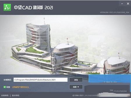 1.在本站下载好数据包后进行解压得到安装程序“ZwcadArch2021_CHS_X64.exe”,鼠标双击运行进入安装向导,选择安装位置,默认路径为C:\Program Files\ZWSOFT\ZwArchitecture 2021!再勾选“我同意”相关许可协议,最后点击“立即安装”