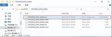2、得到“VPS2022_ENU_64bit”文件夹,加载里面的“VPS2022_ENU_64bit.iso”镜像文件