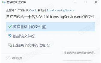 9、将“crack”文件夹中的“adskflex.exe”复制到安装目录中,点击替换目标中的文件