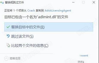 12、将adlmint.dll复制到默认C:\Program Files (x86)\Common Files\Autodesk Shared\AdskLicensing\11.0.0.4854\AdskLicensingAgent\adlmint.dll ,点击替换目标中的文件