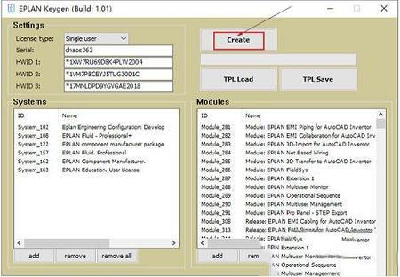 14、这样就完成了软件版本和模块的加载,在点击“creat”: