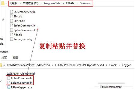 16、接着将“Keygen”文件夹里的“EplanCommon.lir”和“EplanCommon.lit”文件复制粘贴到下面的路径中,并替换掉原来的文件: