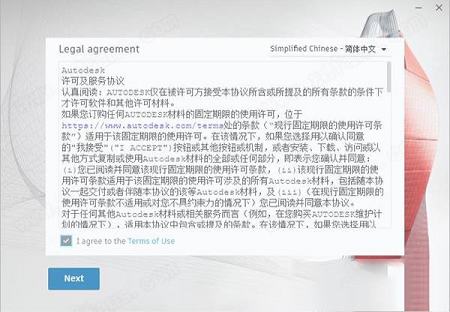3、进入安装向导选择“简体中文”,勾选“ I agree to the....”,点击next;