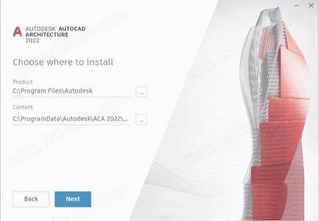 4、选择安装位置,默认路径为“C:\Program Files\Autodesk”,建议最好不要安装到系统盘(C盘)